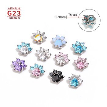 Thời trang ASTM F136 Titan piercing Cat Paw Helix Bông tai labret cổ điển Tai Top mũi nhẫn trang sức bán buôn các bộ phận